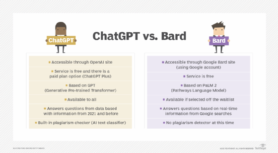 올해 7월 3일, 구글이 자사의 AI 기반 챗봇 'Bard'를 소개하면서 AI 생성 콘텐츠 관련 대결이 시작되었습니다. ChatGPT는 2022년 11월에 출시되어 빠르게 인터넷에서 큰 인기를 끌었습니다.
